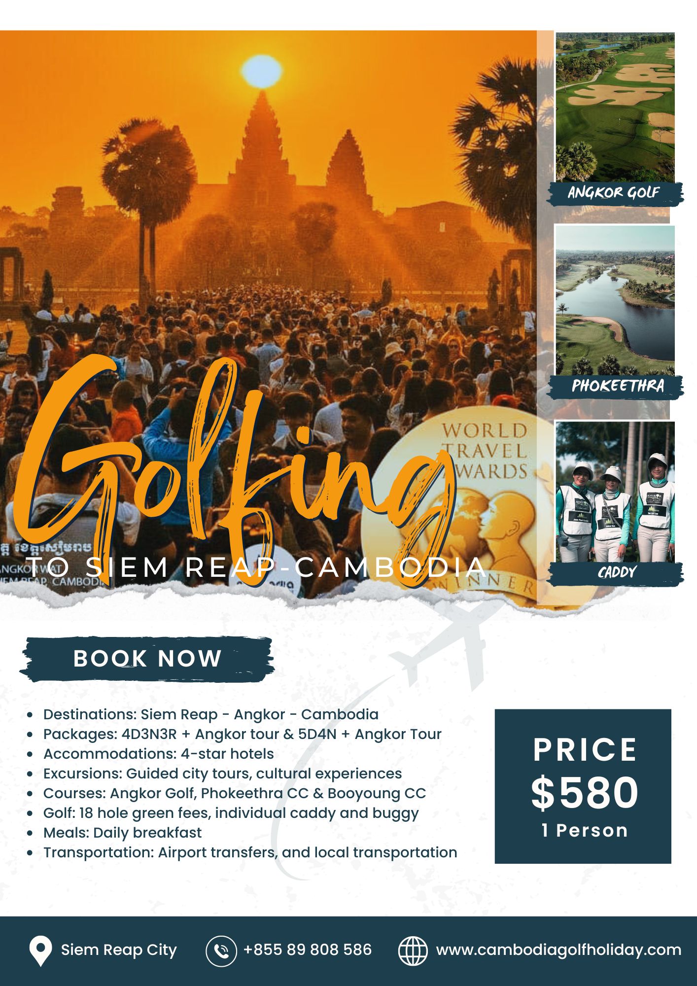 Tourism plays a huge role in the Siem Reap economy and visitors coming to the city to play the golf courses add to the tourism industry. Over 50% of the jobs in Siem Reap are tourist based and this highlights how important visitors are to this region of Cambodia.